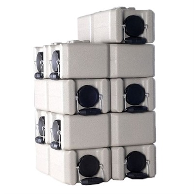 WaterBrick Stackable Water Containers and Food Storage Container: 3.5 Gallons of Liquids or up to 27 Pounds (264 Adult Servings) of Dry Foods. Made of rugged, high density polyethylene (HDPE) with an easy grip comfort handle. These unique water containers, unlike any other, can also hold food and other life essentials while adding value by cross stacking up to 4 feet for maximum efficient storage. Wide diameter lid opening with notched easy grip lid allows for an average adult to pull stored contents out of the container by hand. Spigots not included. Ventless Spigot Assembly: Both sizes accept ventless spigot for easy access. Spigot unit simply replaces lid, and is sold separately. Not for storage of flammable liquids. Big Book Catalog, Issue:68, Page:556