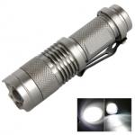 Q3 3W 210 Lumen 1 Mode Mini Focus Flashlight Torch with Pen Clip Silver